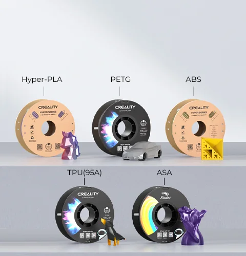 - Maneja filamentos Hyper PLA, PETG, ABS, TPU(95A) y ASA.