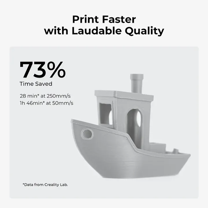 - Velocidad máxima de impresión de 250 mm/s y aceleración de 2500 mm/s²