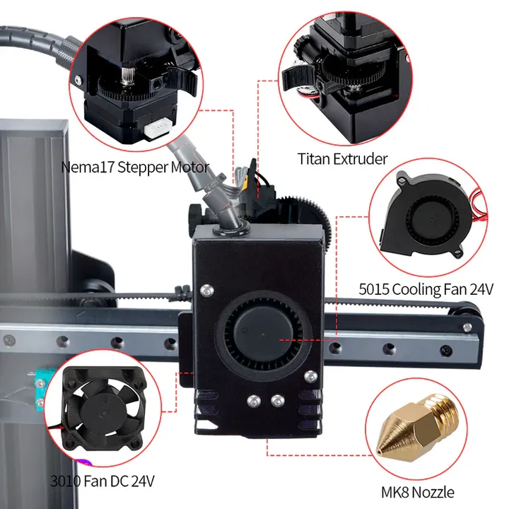La impresora 3D Kingroon KP3S 3.0 es una impresora 3D de escritorio con un extrusor de accionamiento directo para impresiones con diversos filamentos de impresora 3D, como PLA , TPU, PETG y más. Los rieles de guía lineales tanto del eje X como del eje Y aumentan enormemente la precisión de impresión.