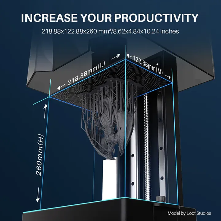 Experimente mayores tasas de éxito de impresión con la nueva película de liberación ACF, especialmente diseñada para Saturn 3 Ultra. Con una menor fuerza de liberación, un lado está esmerilado (boca abajo) y el otro lado es liso, combinado con la resina estándar ELEGOO RAPID que se lanzará próximamente, permite velocidades de impresión hasta 3 veces más rápidas, alcanzando velocidades de hasta 150 mm/H. Saturn 3 Ultra viene con un cuerpo de máquina totalmente metálico para mejorar la robustez y durabilidad de la impresora, lo que la hace capaz de soportar los rigores del uso frecuente. El diseño elegante y moderno de la impresora también agrega un toque de elegancia a su espacio de trabajo.