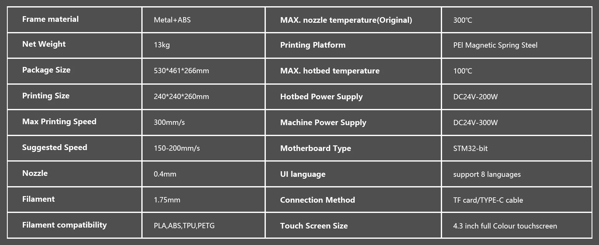 - Tamaño de impresión: 240x240x260mm